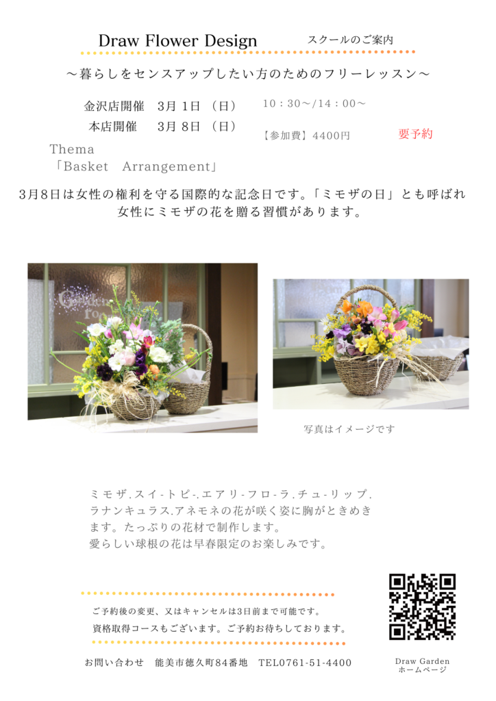 3月前半のフラワースクールのご案内