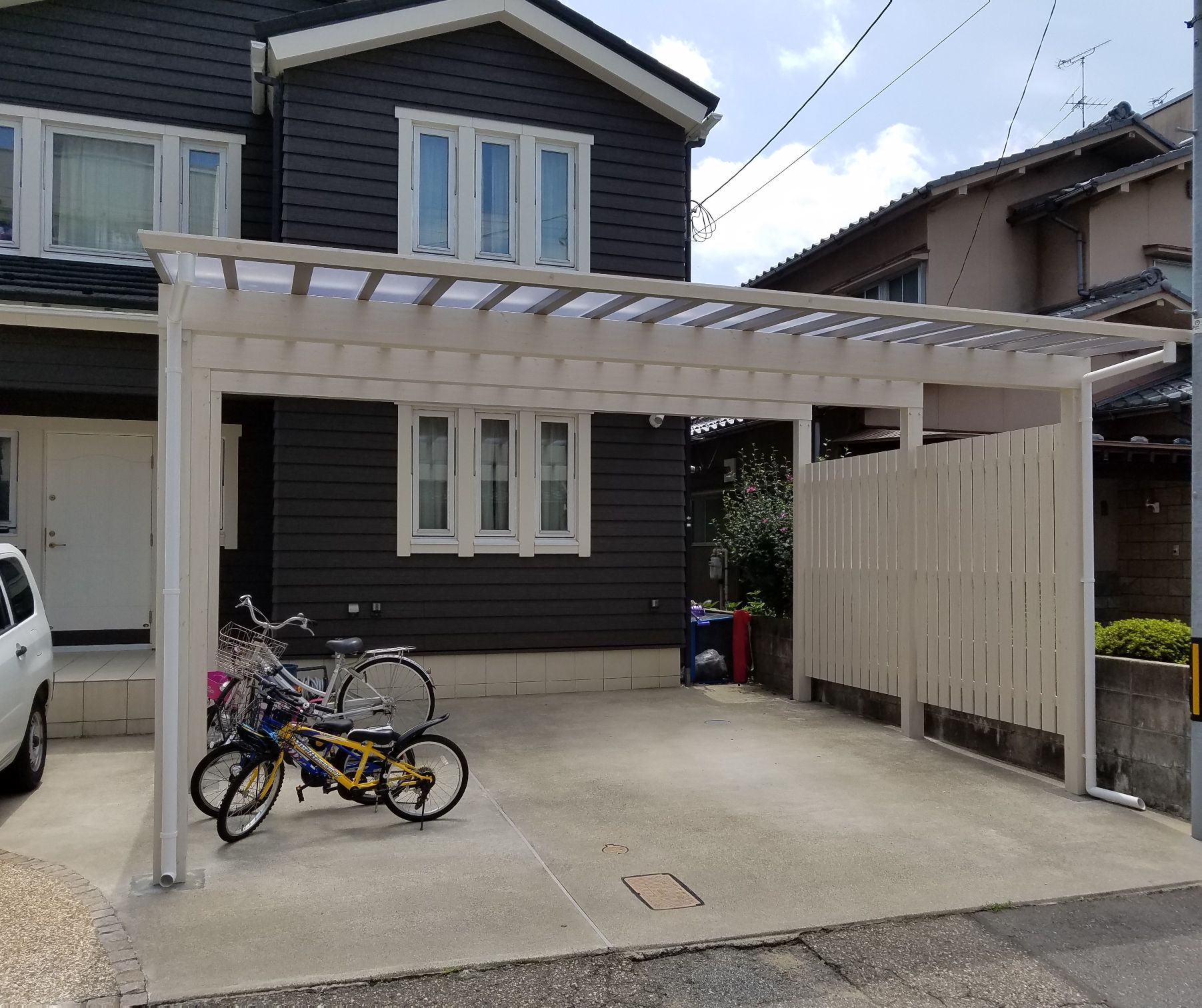 木目調のスタンプコンクリートがかわいい駐車スペース