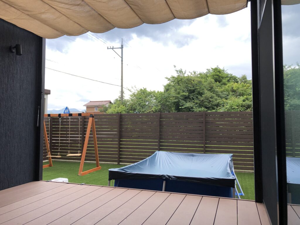 芝生の駐車場でナチュラルモダンな外構
