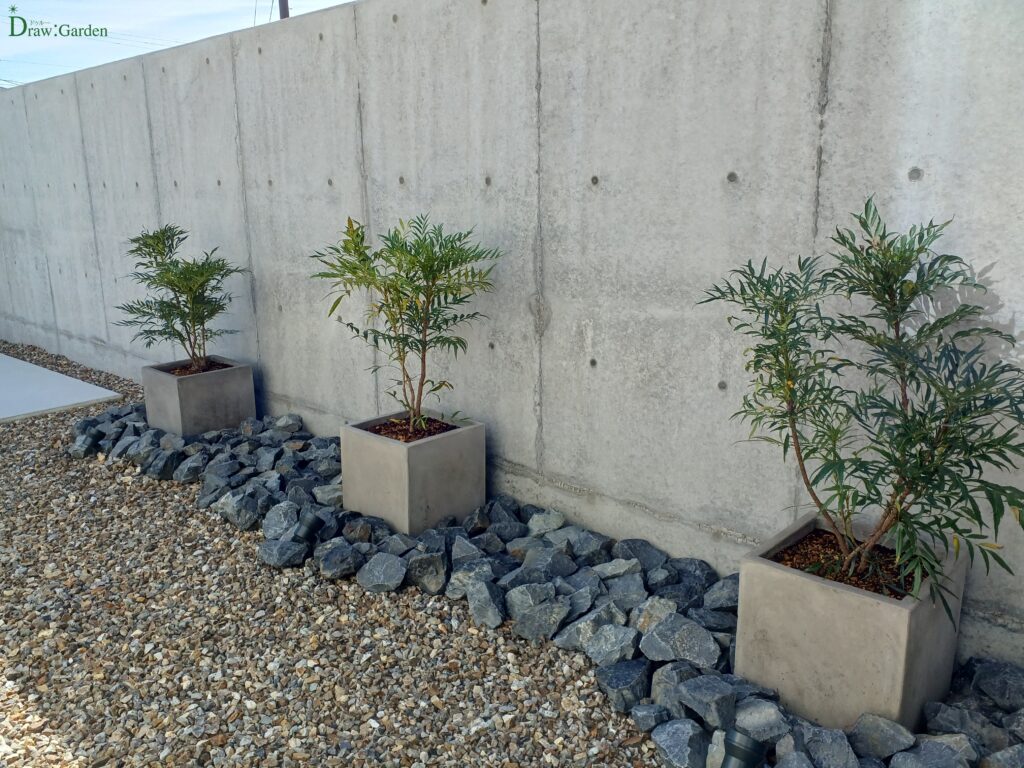 アンティーク門柱を組み合わせたマンションの花壇の植栽