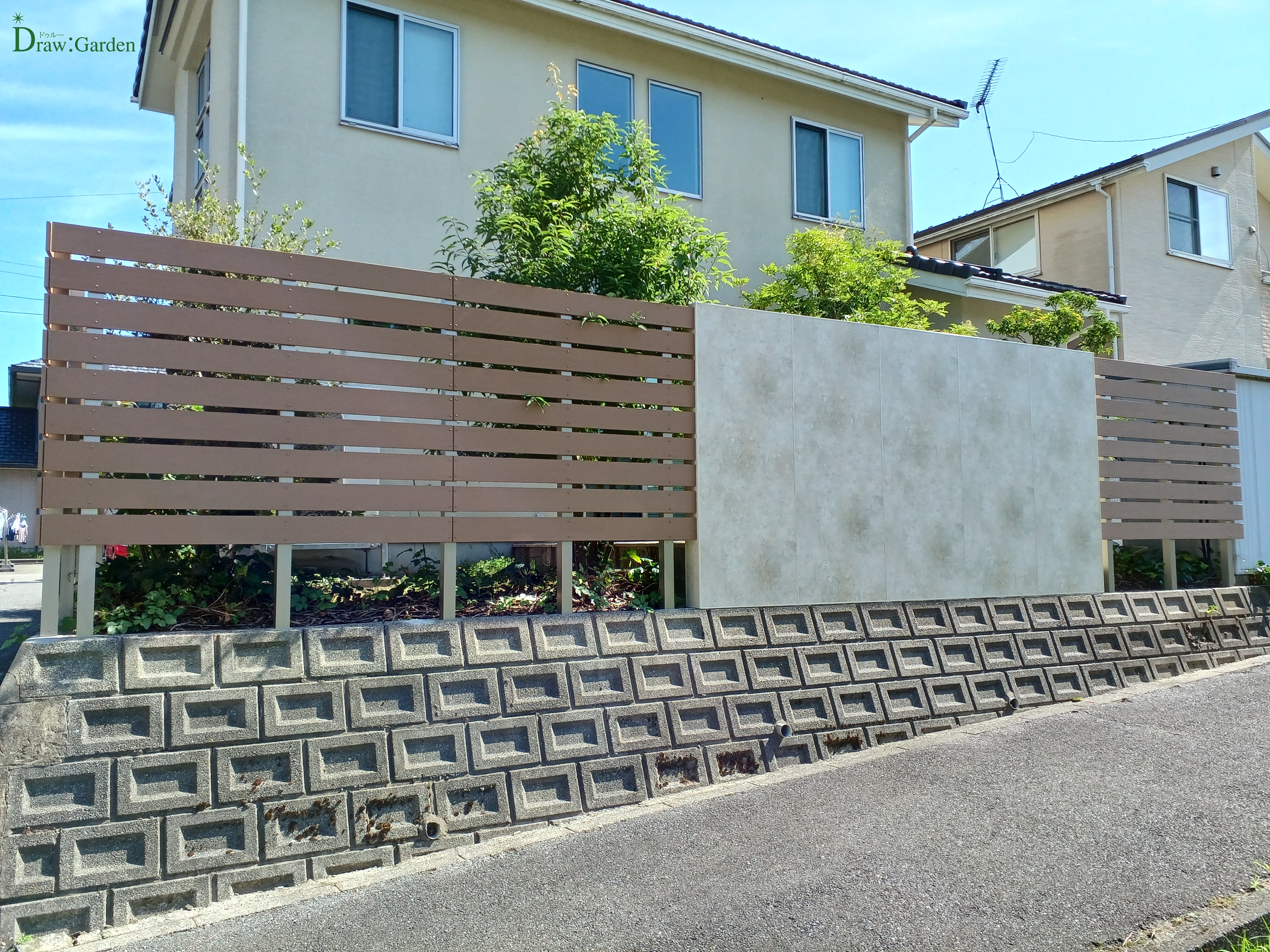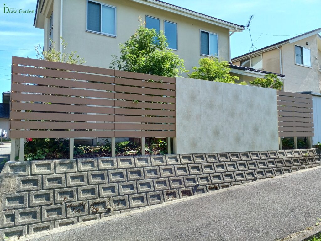 シンプルなデザインと落ち着いた木目調のフェンス