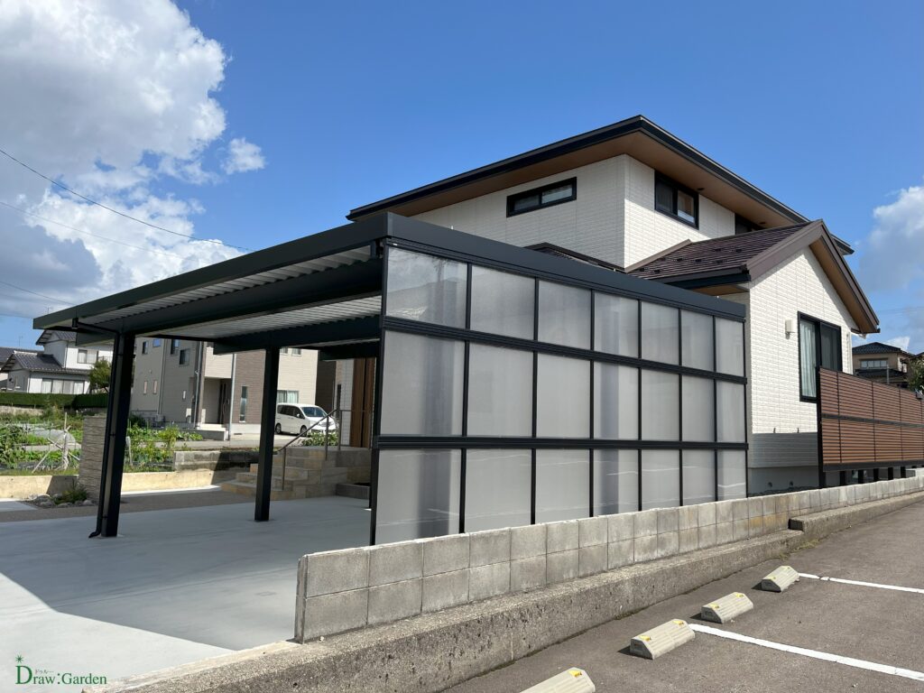 木目調アルミで玄関前に目隠し風除室