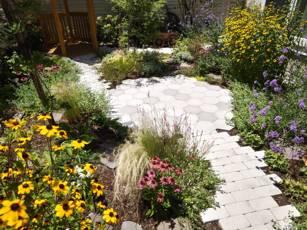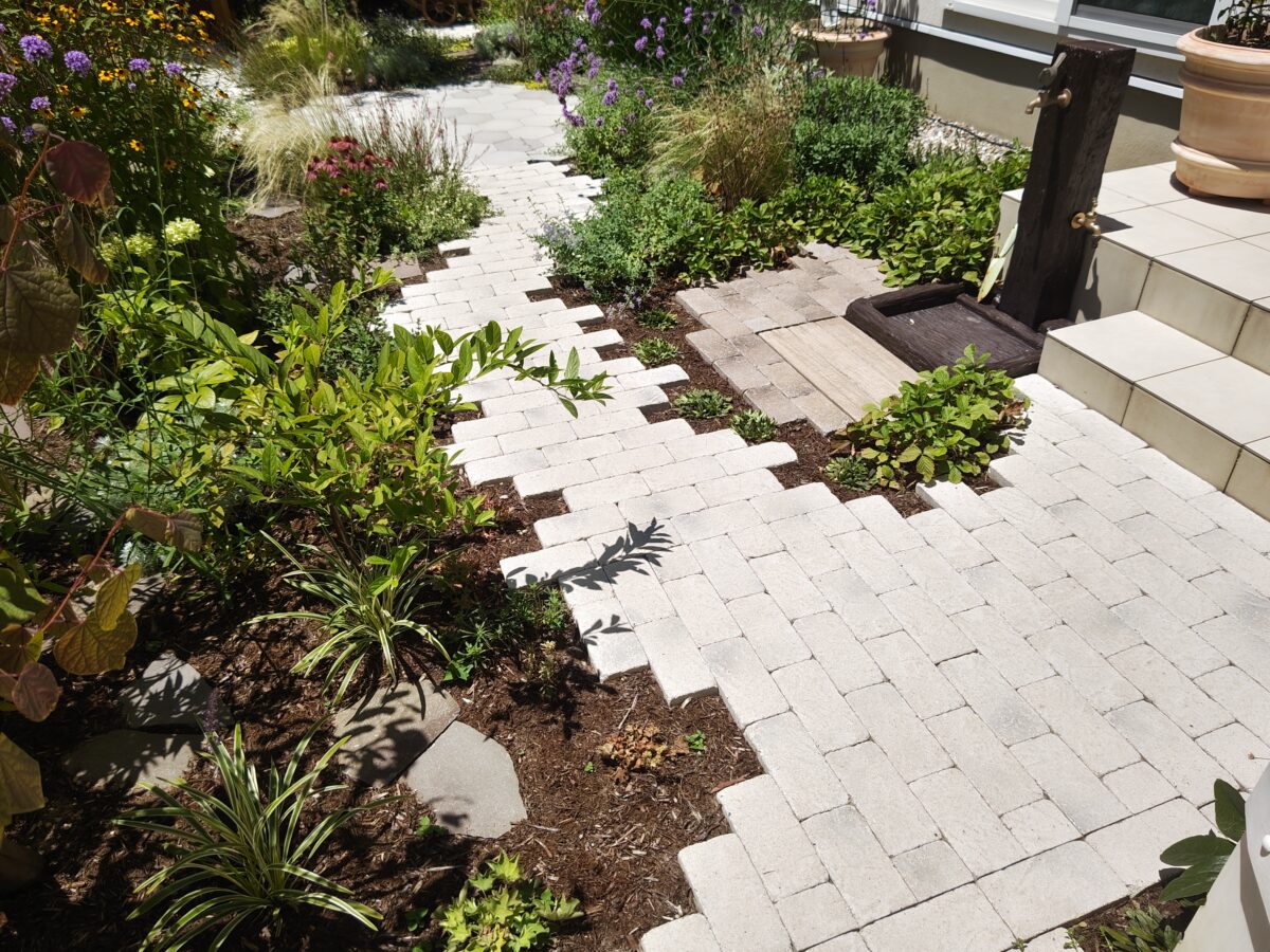 撮影業者様、店先のお庭を撮影スペースにリフォームしました。 レンガ敷きの遊歩道を歩くと季節の草花たちが出迎えてくれます。 メロゥ(Mellow)・・・居心地良いの意