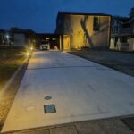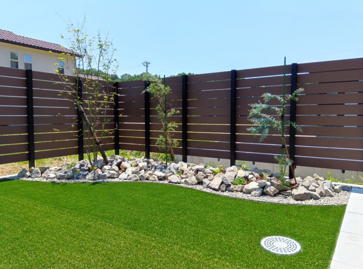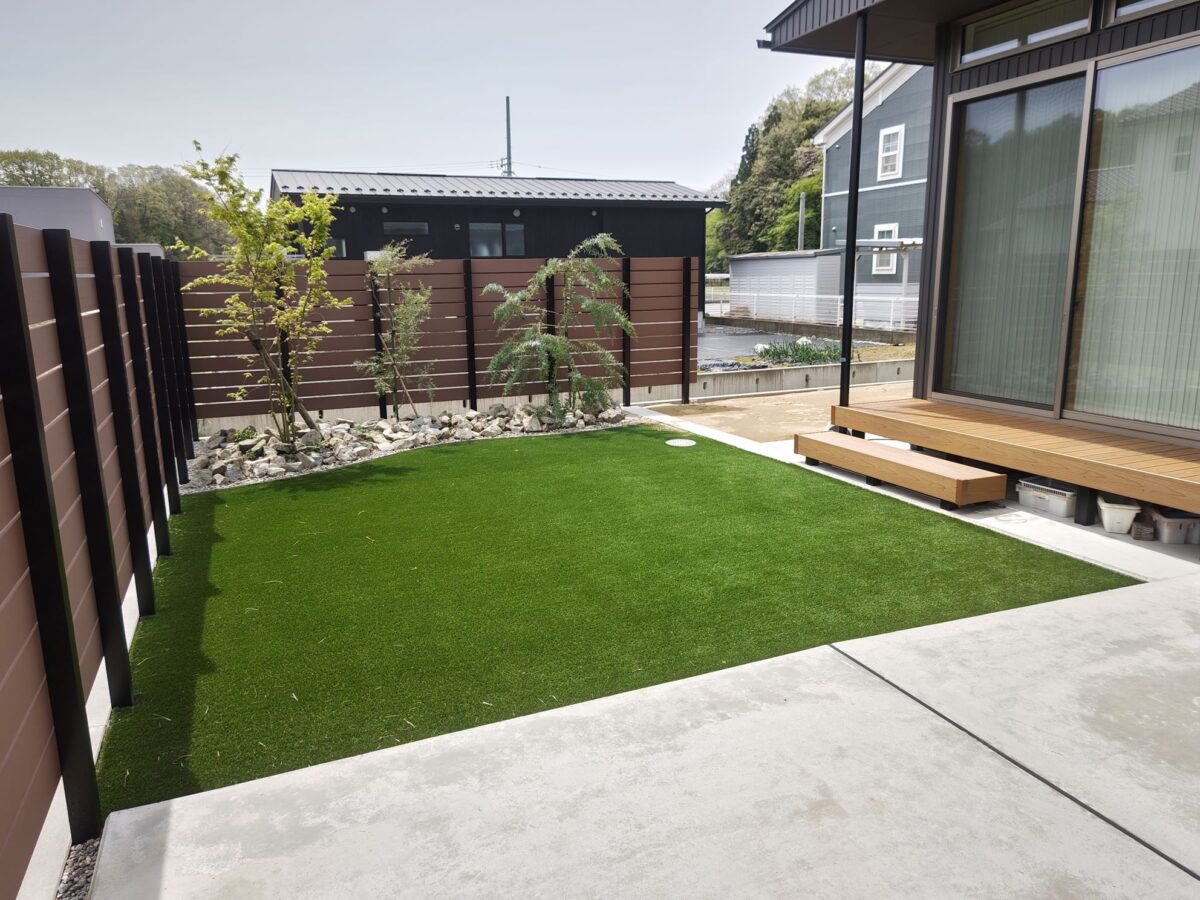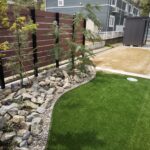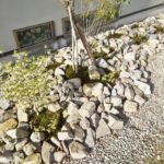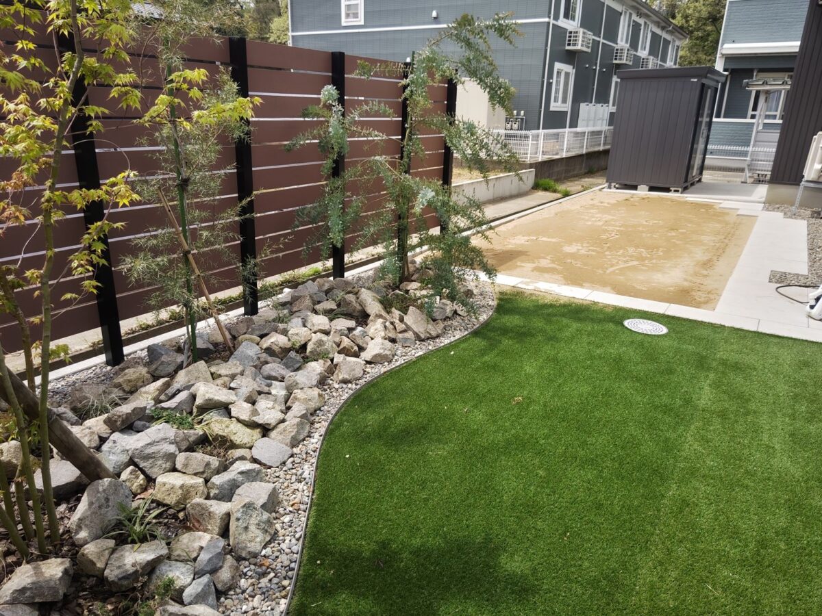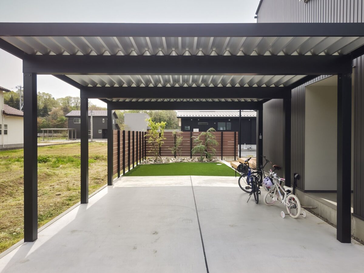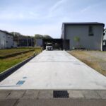 道路から施主様邸まで20mの距離を活かし、 奥行きのある景観を演出しました。 前庭は、ロックガーデンに杉苔を添えて和のテイストを創出。 主庭は、カーポートを額縁に見立てることで奥行きと広がりを 感じさせる構成としました。 夜には、照明によって樹木の陰影が外壁に映し出され、 距離があるからこそ際立つ印象的な景観を生み出します。 思わず近づきたくなる『距離』そのものを魅力に変えた外構です。